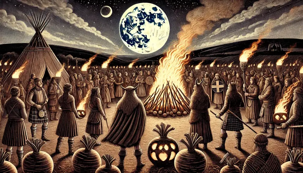 Pour eux, les esprits des morts revenaient sur terre pour rendre visite aux vivants. Les Celtes allumaient alors des feux de joie pour éloigner les mauvais esprits et honorer les défunts, ils laissaient des offrandes de nourriture et de boissons pour apaiser les esprits; les gens portaient des costumes (faits de peaux et de têtes d’animaux) pour se déguiser et confondre les esprits malveillants.